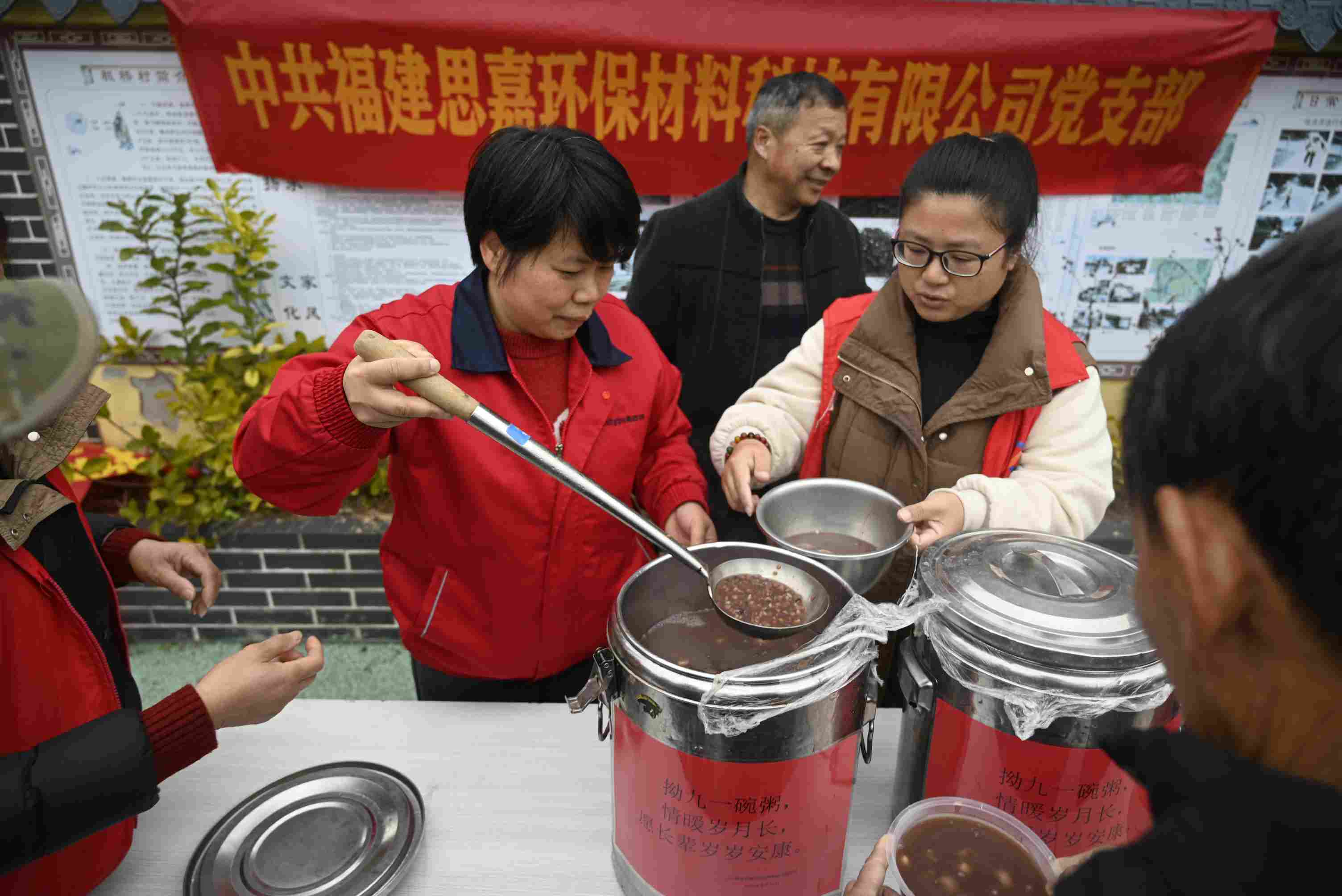 在常態化幫扶之外,思嘉更將公益融入傳統民俗,讓溫暖在節日中傳遞。每逢拗九節,思嘉便會聯合周邊村委會開展“拗九暖春”公益活動。活動現場設置了專門的發放點,思嘉人穿戴整齊,有序將熬好的拗九粥盛進碗里,逐一送到前來領取的村民手中。思嘉人將一碗碗熬煮入味的拗九粥送到村民手中,用傳統美食傳遞鄰里溫情,讓全村老少在春日里感受到濃濃的關愛。